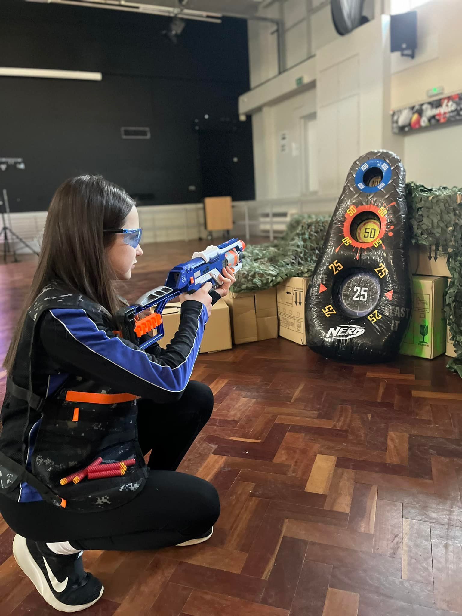 Exhilarating shoot em up style disco party - includes Nerf Guns, bullets, games and cover and obstacles. Safety googles, vest and cool mini disco to finish with (2hrs)